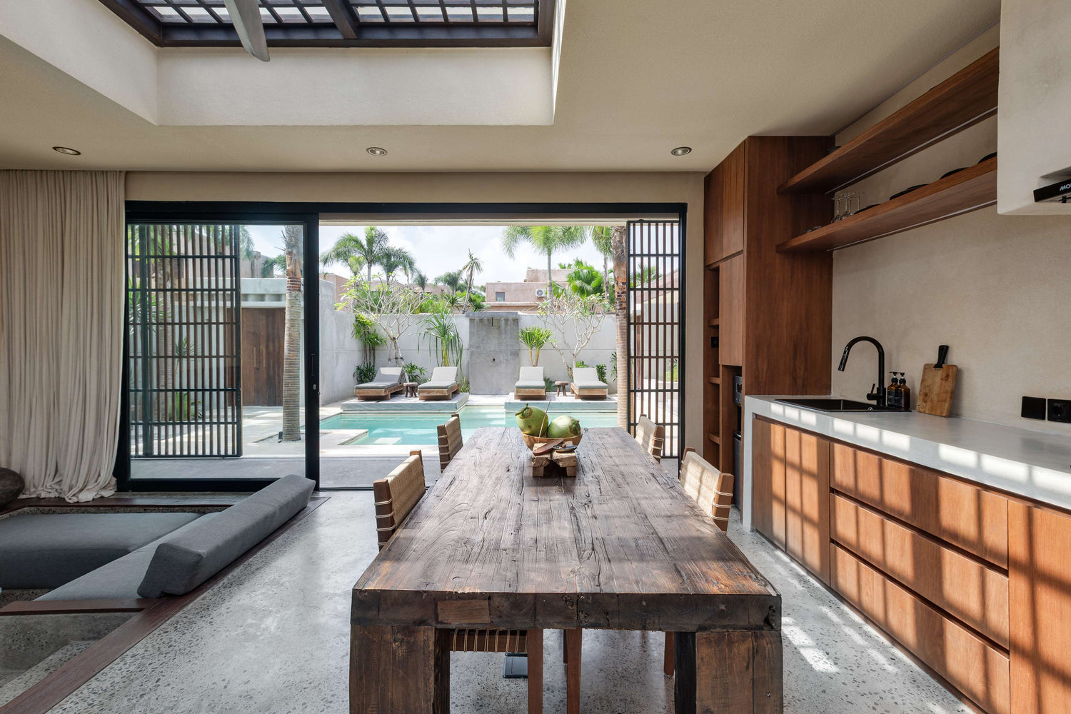 Our next stop: Ukiyo II in Pererenan, a minimalist 2 bedroom villa with a strong architectural edge. Built from raw concrete and wood, the space leans into Japanese design influences — open layout, a mix of warm and cold textures, and thoughtful details everywhere you look.
