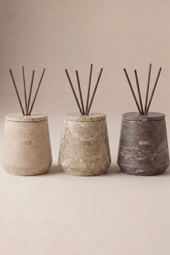 Candle: Insert the wax refill into the stone vessel. Trim the wick to 0.5 cm before each burn to ensure a clean, even flame. On first use, burn the candle for 2–3 hours until the wax reaches the edges to prevent tunneling. Limit each session to 4 hours to preserve fragrance quality. Always burn on a heat-resistant surface and never leave unattended.