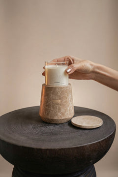 The Den brings a touch of sophistication to any space. Earthy tones, gentle veining, and a surface that balances softness with structure. Carved from light emperador marble, each piece has its own natural markings. Solid, weighty, cut from real stone. Designed to hold our candle refills or diffuser oils, but just as beautiful on its own. On a coffee table. By your bed. Holding something small and personal. We believe in fewer things, better made. This is one of them.